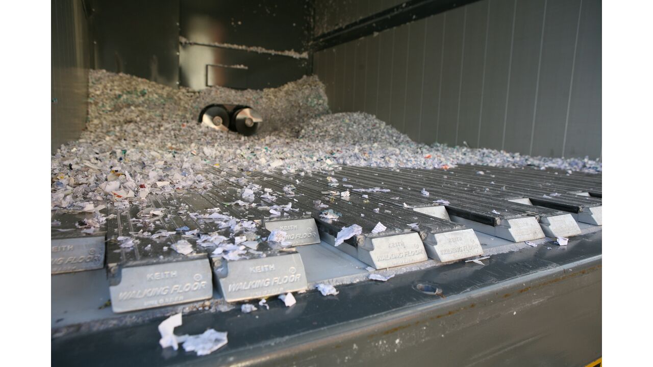 Papier wird z. B. zu Sicherheitsstufe P4 zerkleinert, und danach sorgen zwei Schneckenverdichter dafür, daß es mit dem anderen Papier gemischt wird. Dies sichert die Geheimhaltung der Informationen, weil es jetzt unkenntlich ist.