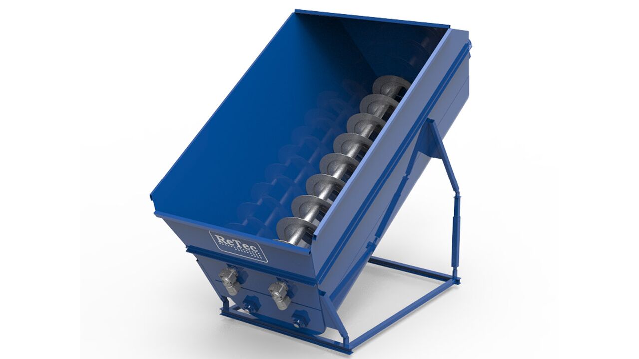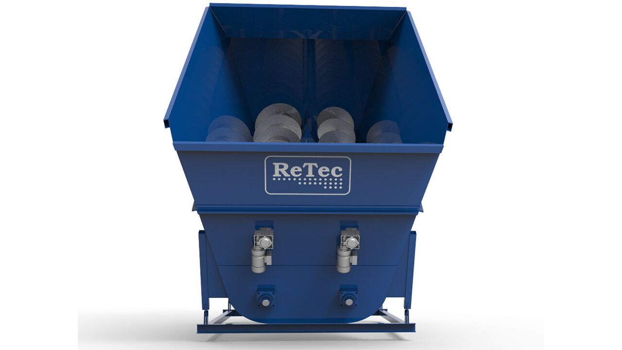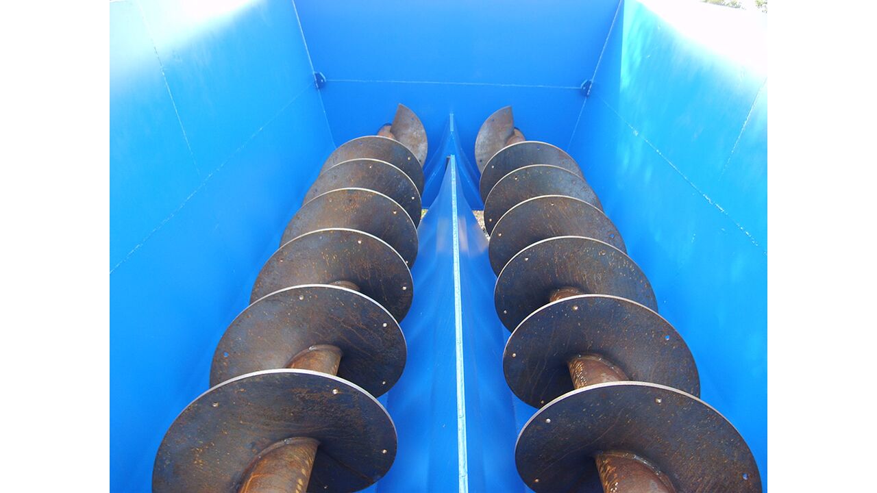 Der stationäre Mixer mischt in einem diagonalen Mischwinkel, der einen natürlichen Transport des Materials im Mischer ermöglicht. Das Material wird mit einer Schnecke durch die Maschine transportiert. Am Ende der Förderschnecke sind Abstreifplatten montiert, die die Beschickung abschießen, und von der Oberseite des Mischers fällt die Beschickung natürlich zurück und der Mischvorgang wiederholt sich.